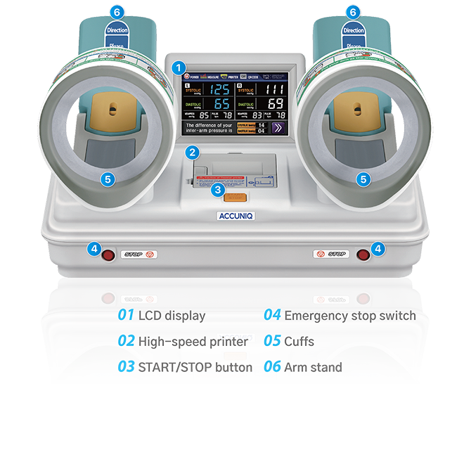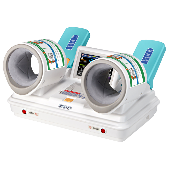 ACCUNIQ BP850 je tlakoměr, který měří tlak na obou rukách jedním měřením, aby porovnal rozdíl v krevním tlaku.