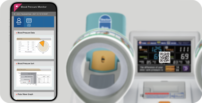 Po dokončení měření krevního tlaku můžete pomocí smartphonu naskenovat QR kód na obrazovce a uložit výsledek měření do telefonu