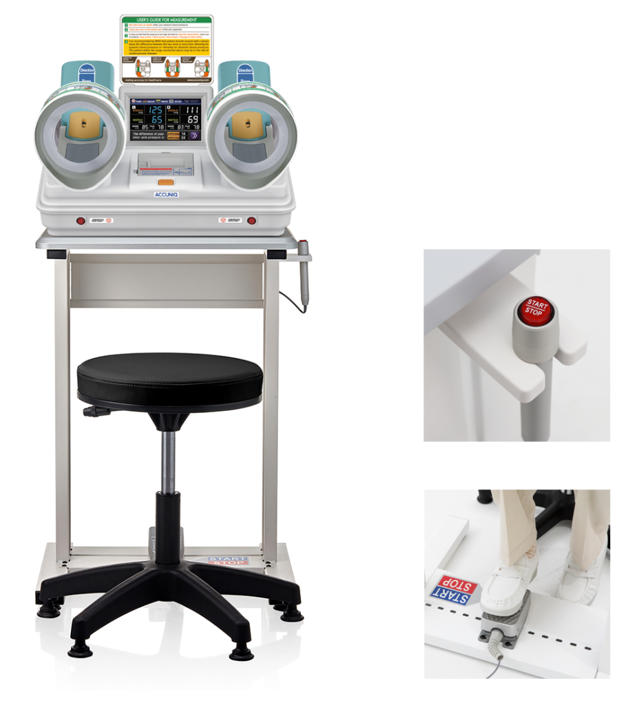 Pro pohodlné měření krevního tlaku na obou rukách je k dispozici exkluzivní ruční a nožní spínač.